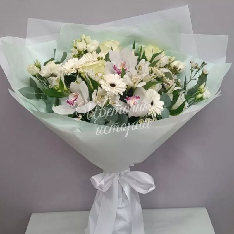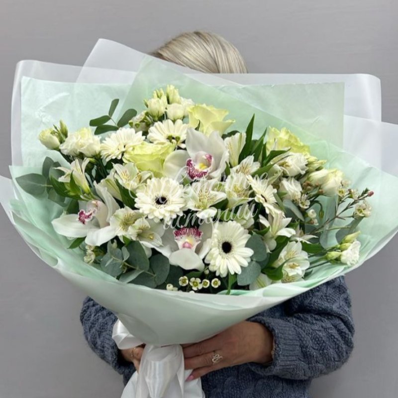 Мы можем создать букет под ваш бюджет, соблюдая все пожелания по составу и цветовой гамме. К букету можем добавить подарок, игрушку, сладости или фрукты.