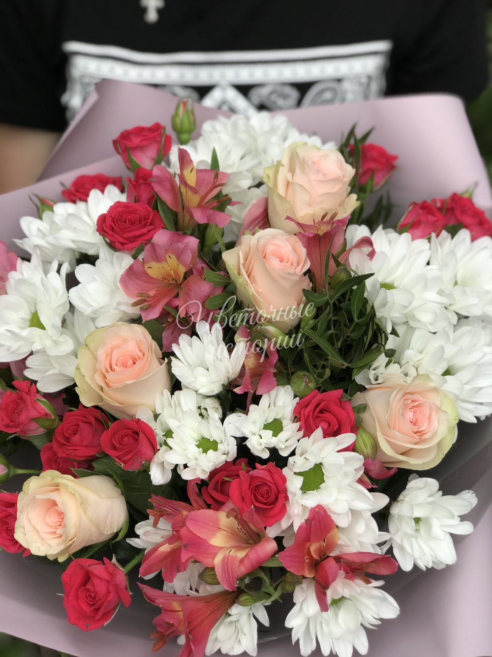 Мы можем создать букет под ваш бюджет, соблюдая все пожелания по составу и цветовой гамме. К букету можем добавить подарок, игрушку, сладости или фрукты.