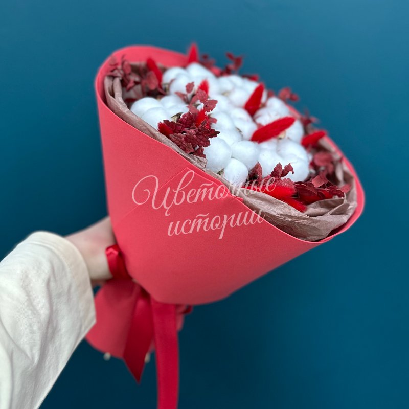 Букет из сухоцветов с хлопком «Любимой»