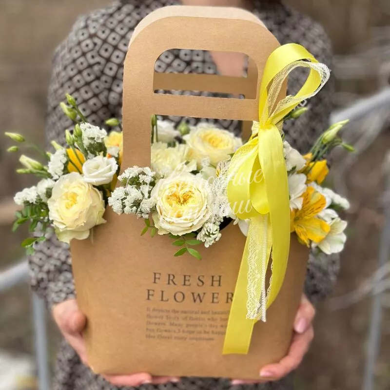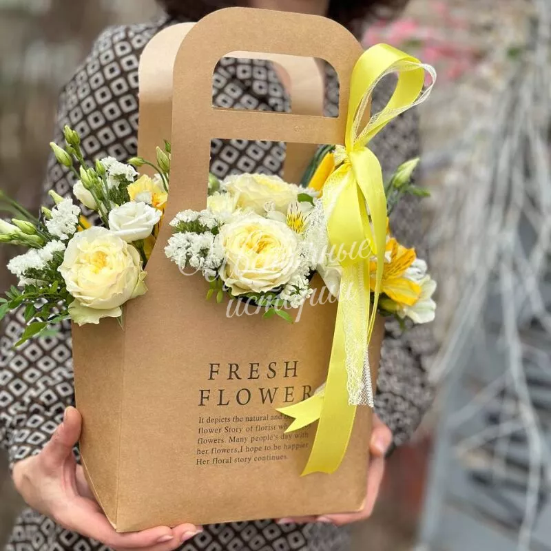 Солнечная композиция из роз и альстромерий будет каждый день радовать Вас и напоминать о наступлении самого живого времени года - весне.